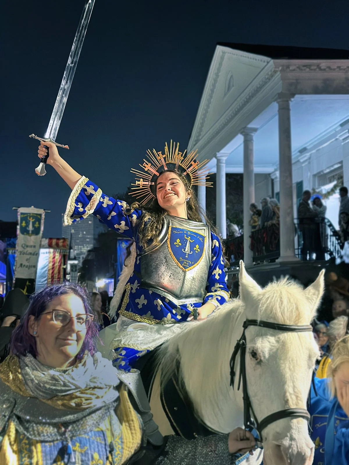 The 18th annual procession through the Quarter honoring Joan of Arc’s birthday changed routes to avoid road construction, but merry throngs were undeterred, lining the streets to welcome the Maid of Orleans and the opening of Carnival season.