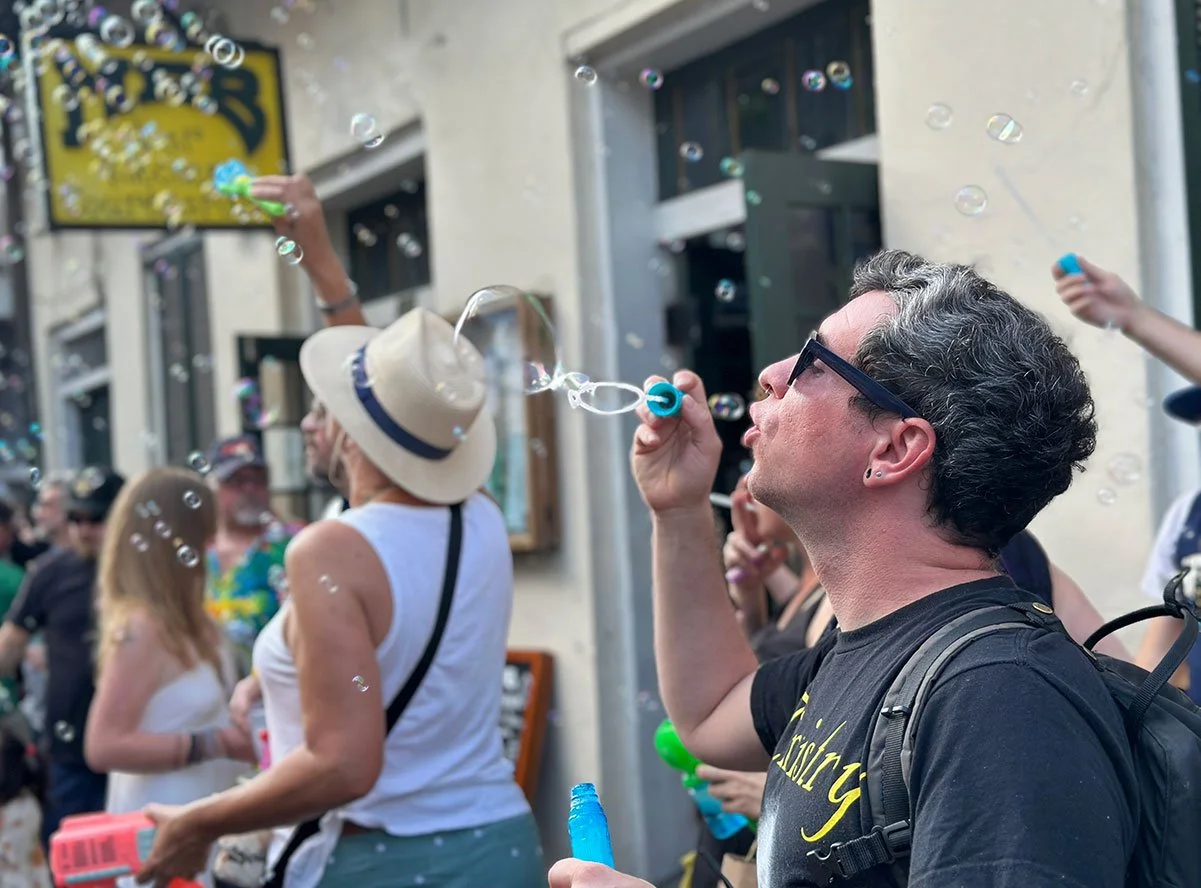 Concerned about his Porshe’s paint job and stray bubbles in his cocktails, a new resident on the block tries to shut down a French Quarter bar’s bubble machine. On Sunday afternoon, the community rallied in a show of support – for the bar, of course.