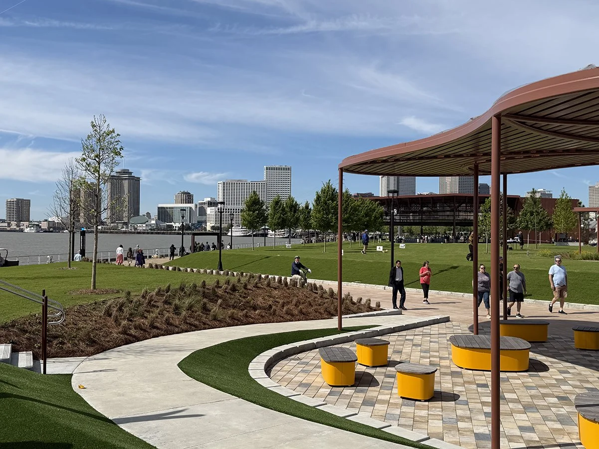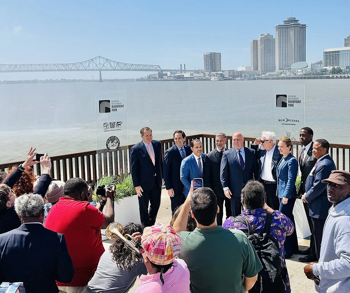 Former Mayor Mitch Landrieu (2010 – 2018) said he spoke on behalf of his father, Mayor Moon Landrieu (1970 - 1978). Public park development on the French Quarter’s riverfront began during the senior Landrieau’s tenure and the initial phase of the park in front of Jackson Square was dubbed the Moonwalk. The new section of the promenade carries the same name.