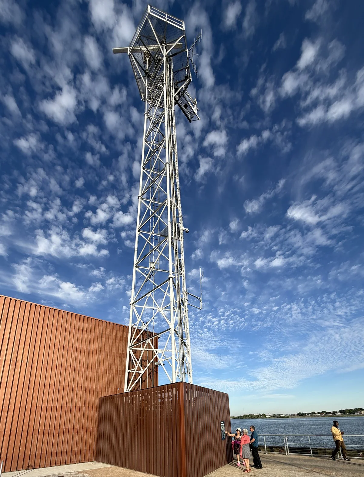An important part of Riverfront communications, the Coast Guard tower, has become a feature of the park.