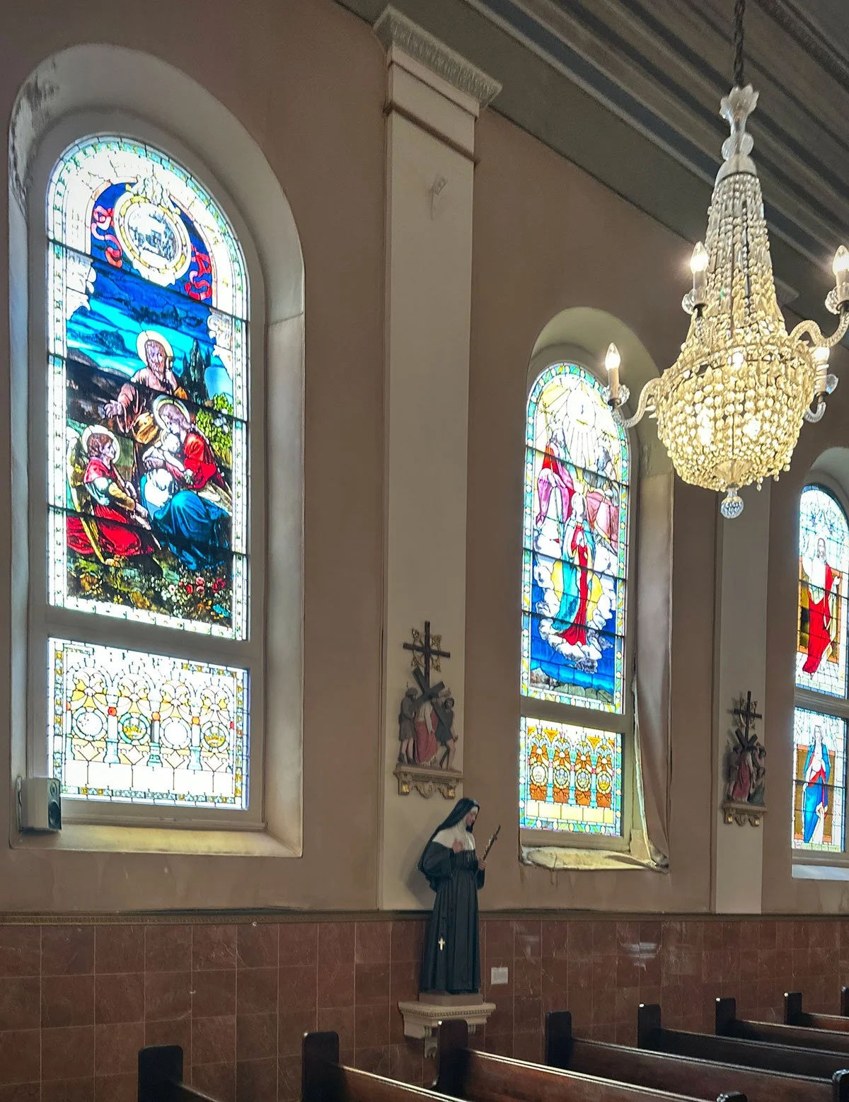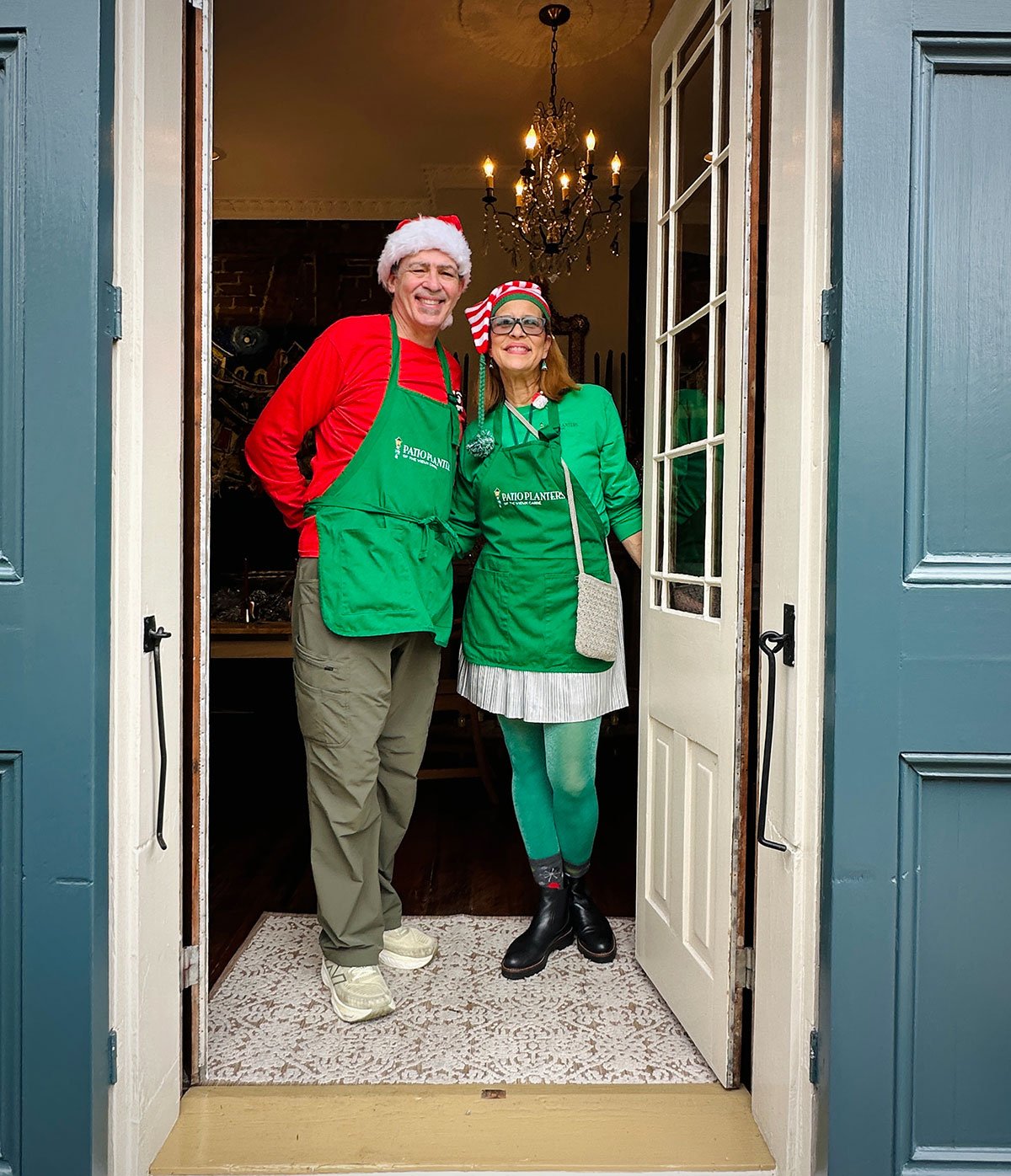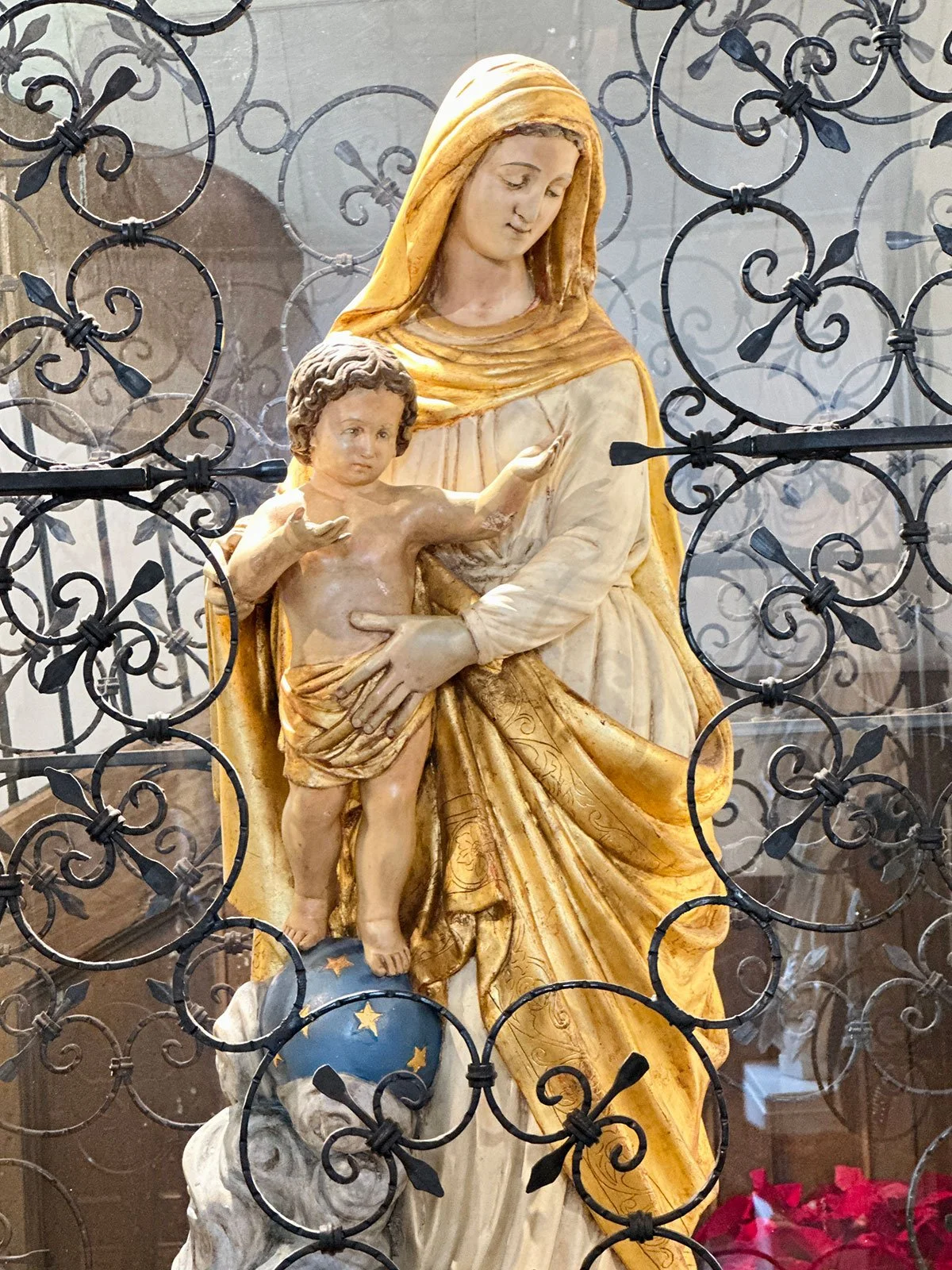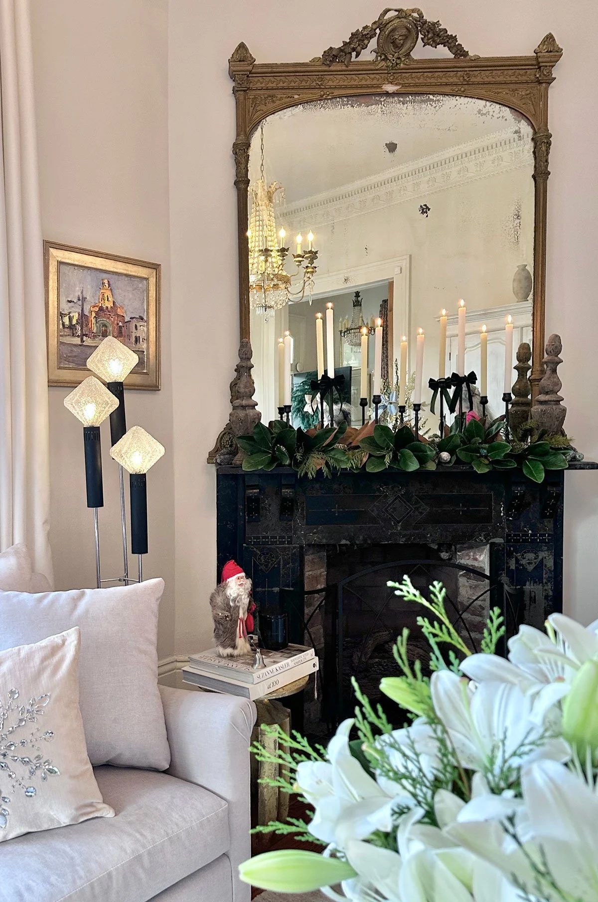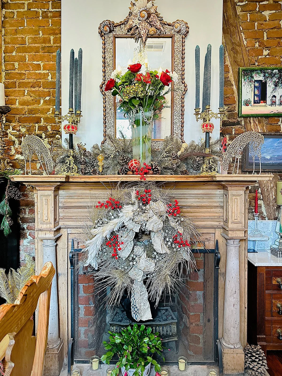 Tony Marino’s bottle tree adds a festive note to the dining room, with its altar to St. Joseph