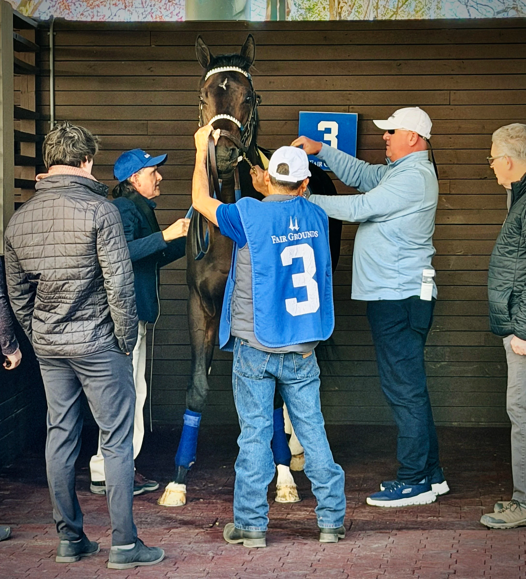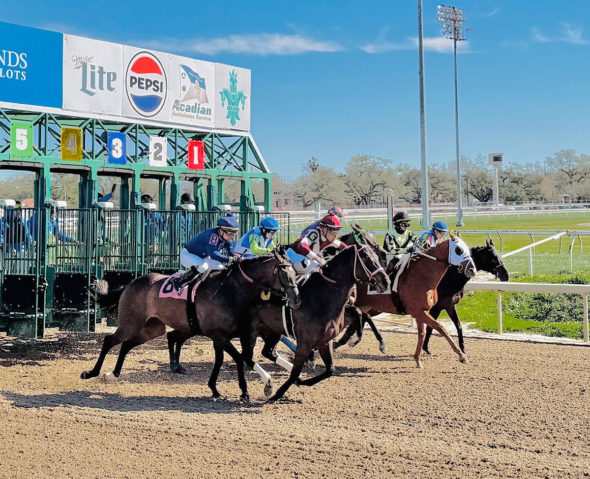 And they’re out of the gate! In front of the McPeek barn at the New Orleans Fairgrounds in February, 2026, photo by Ellis Anderson