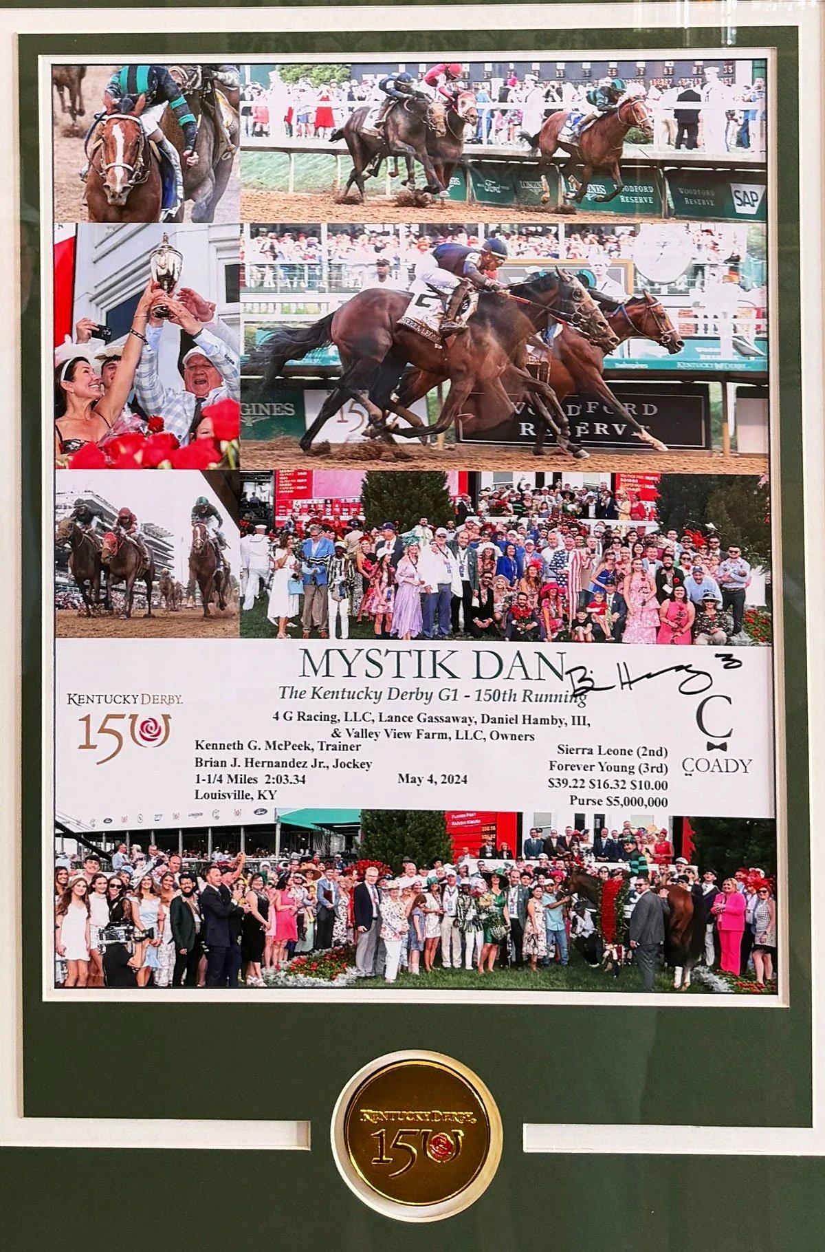 A photo montage of Mystik Dan’s 2024 Kentucky Derby win hangs in the den of the McPeek’s French Quarter home.