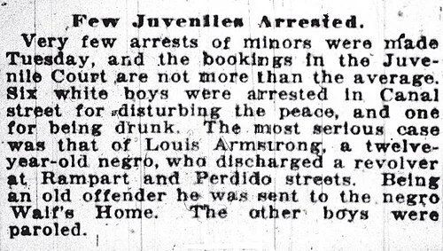 Surrounded by his Rosetta Stone of instruments and artifacts, the 65-year-old Armstrong told reporters about how “jazzing up New Year’s Eve” by firing his stepfather’s pistol got him shipped off to the Colored Waif’s Home in January 1913.