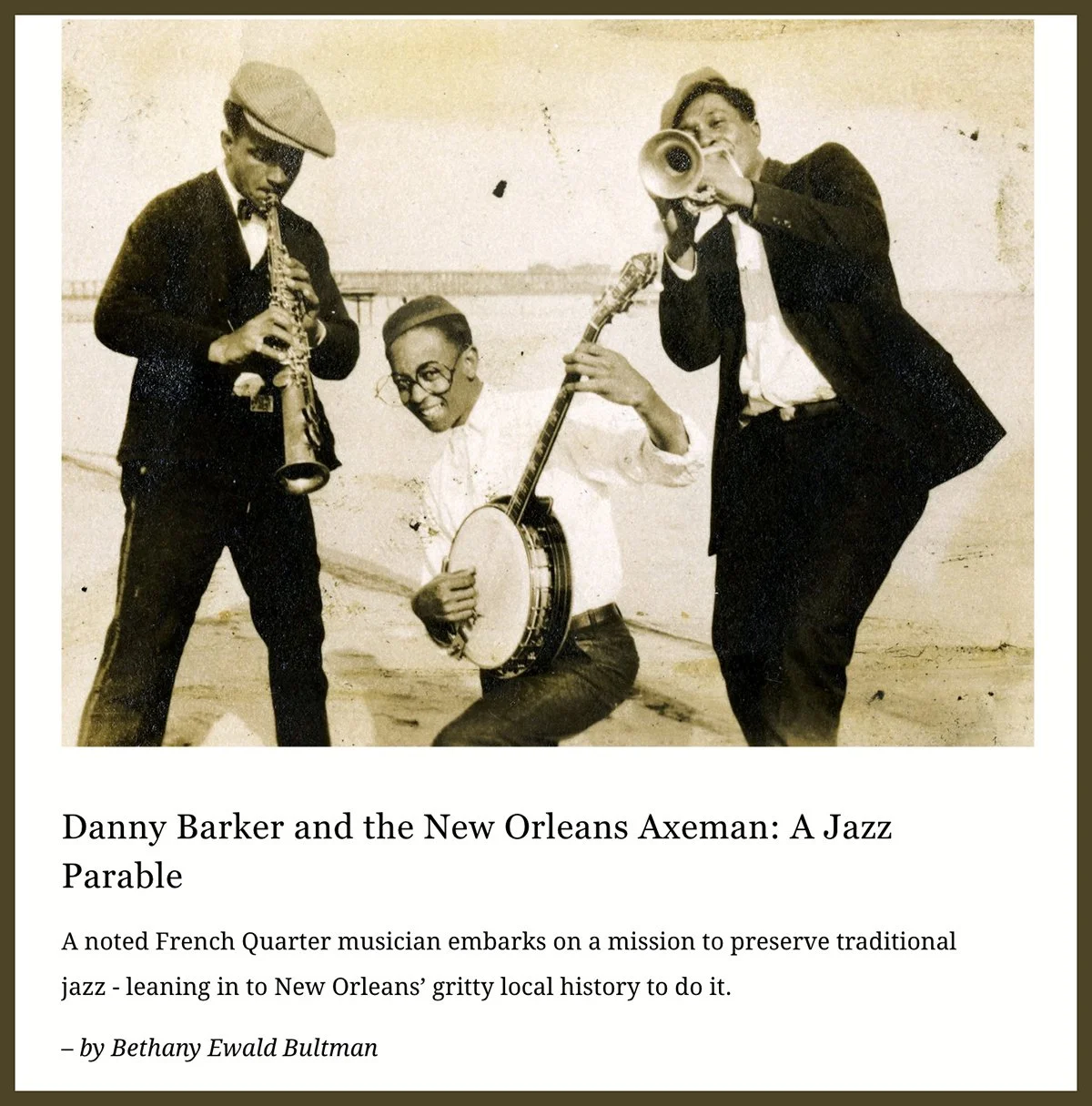 Epilogue: Today, thanks to the worldwide attention Louis Armstrong brought to the fledgling jazz museum, the New Orleans Jazz Museum contains the most extensive New Orleans jazz collection in the world. As part of its vibrant programming, each March, it hosts the annual Danny Barker Banjo & Guitar Festival.