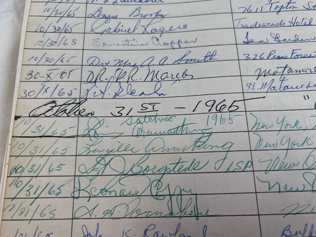 Armstrong’s signature on the guest register of the Jazz Museum