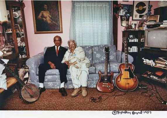 Danny Barker’s grandson, Larry Brunner, proudly displays his grandparents’ 1974 gold record at his home in Syracuse, NY. It is one of the few keepsakes he rescued from his late grandparents’ Sere St. home after Hurricane Katrina in 2005. Photo courtesy of Larry Brunner, photographer- Katie Lewis, Danny & Lu Barker’s great-granddaughter.