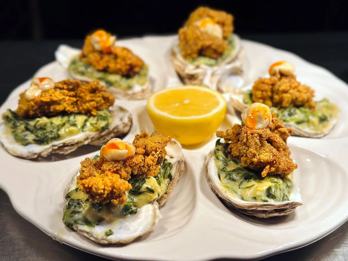 Fried Oyster Florentine on the Half-Shell, an appetizer hearty enough to be a light meal.