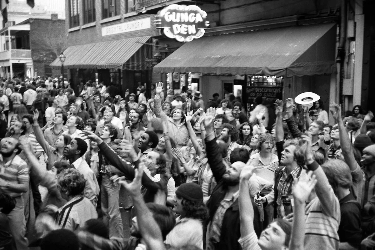 Bourbon Street, Mardi Gras Day, February 27,1979. Photo© Robbie McClaran, from his book, Mardi Gras 1979, used with his permission. Original prints are available at Martine Chiasson Gallery, 727 Camp Street