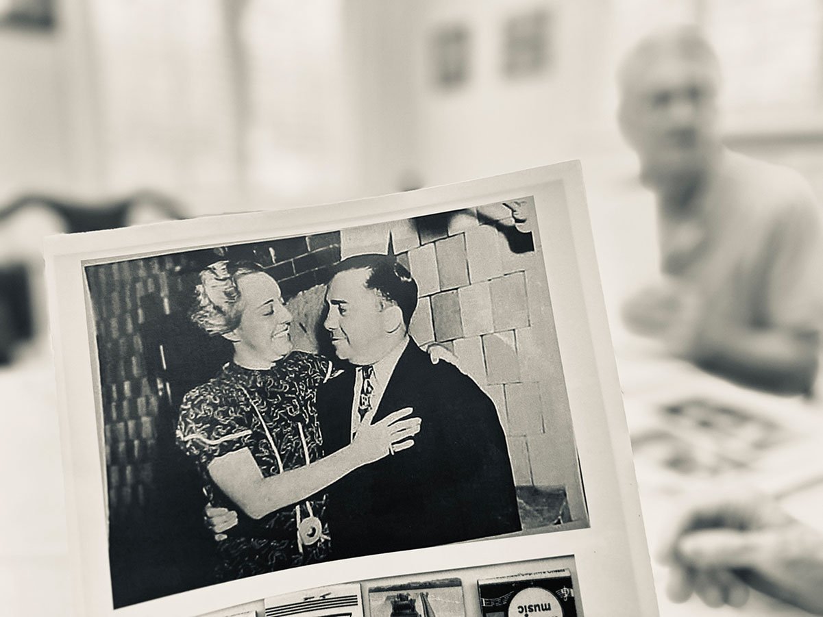 A wedding photo of Norma Wallace and Pete Herman. Herman’s grandson, Fred Holley, is in the background, looking through the family archives. Photo by Ellis Anderson