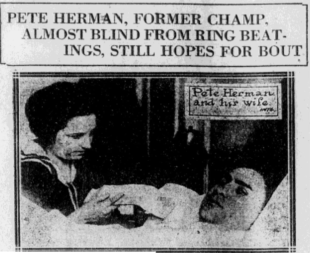 The refs had no idea. Herman continued the match by quietly talking to his opponent, Ray Moore, drawing him closer to deliver such fierce punches that the referee nearly stopped the fight. Pete Herman won by decision. But he lost his sight due to permanently detached retinas.