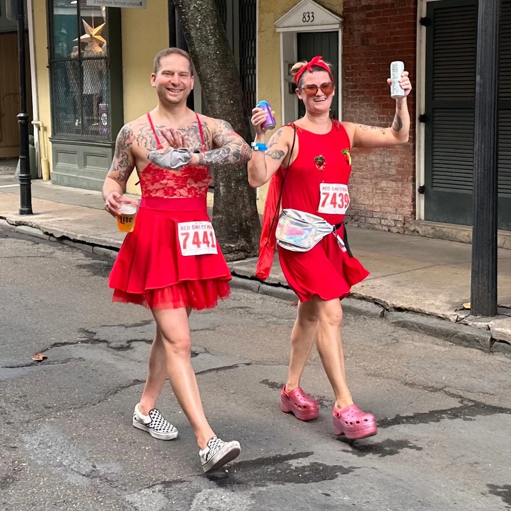 Somehow, the memo started getting out a few years ago that the Red Dress Run – an official race which has raised millions for charity – is a bar crawl that takes place the same day. By early afternoon, Bourbon Street was packed with faux red dressers, sprinkled with the athletes wearing numbers.