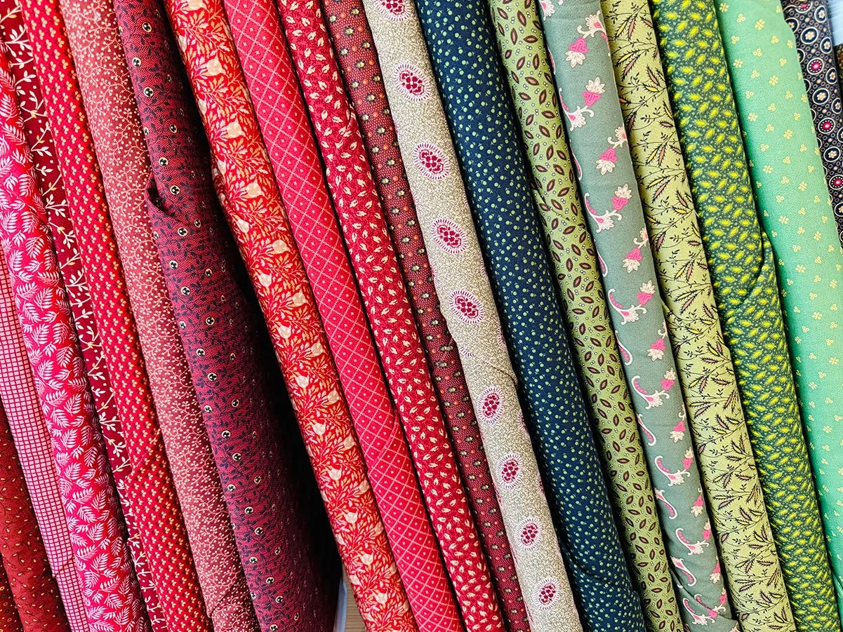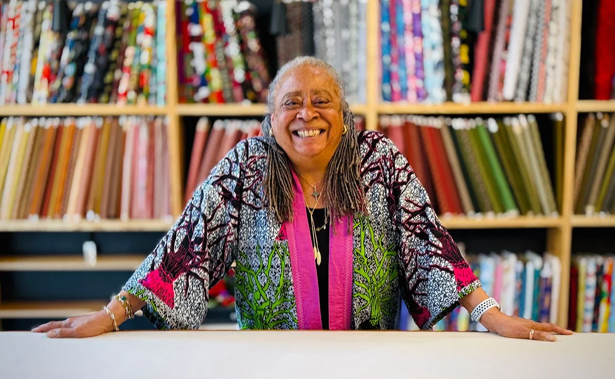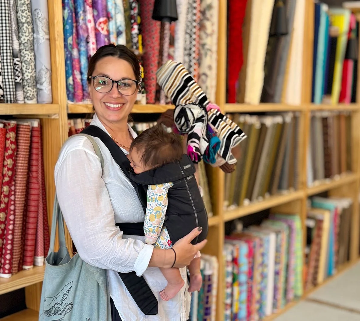 Michie Cooper, a Bywater artist, with a few of the fabric finds she discovered at ricRack.