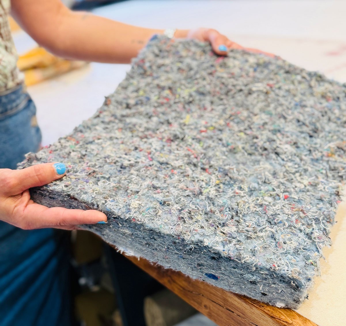 A sample of the insulation that’s created from “end-of-life” fabrics