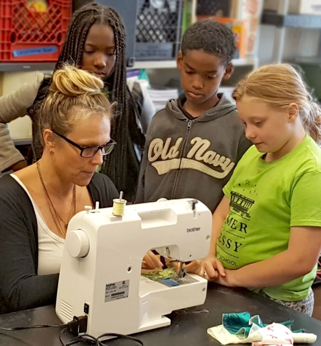 Alison Parker teaching a children’s sewing class, photo courtesy Alison Parker